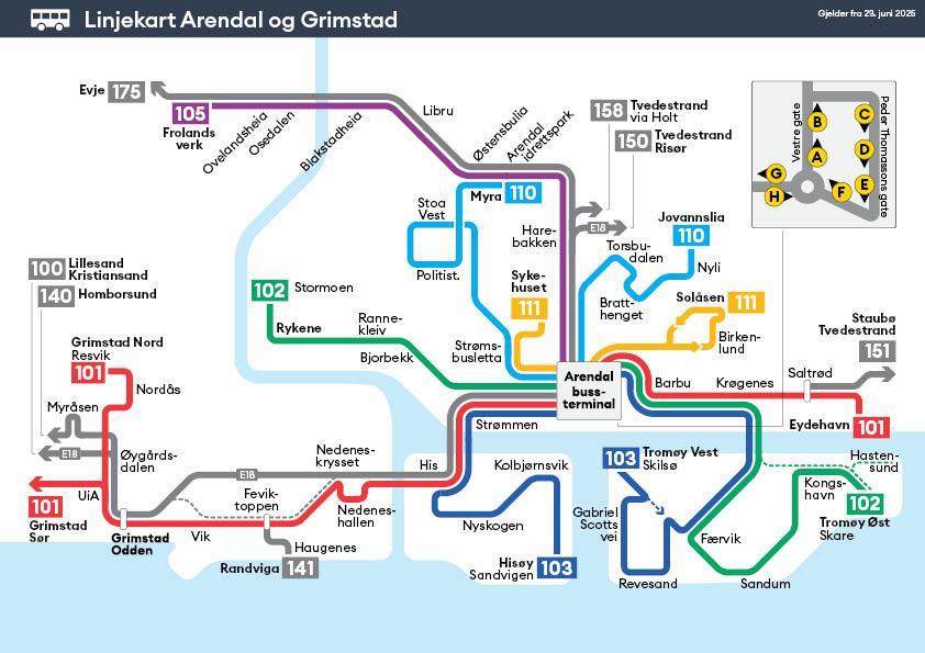 Linjekart Arendal og Grimstad fra 23.06.25 (PDF, 51 kB)