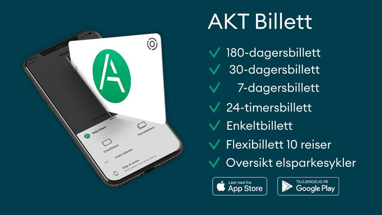 Med AKT Billett-appen er det enkelt å forhåndskjøpe periodebilletter, enkeltbilletter og Flexibillett (for Kristiansandsområdet) på alle linjer i hele Agder som kjøres på oppdrag for AKT.